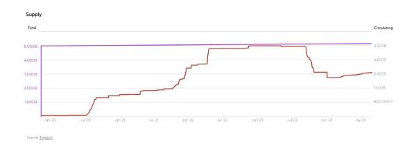 初始分配中,98.55%的Tokens通過工作量證明(PoW)挖出,剩下的1.45%由開發(fā)團隊持有。