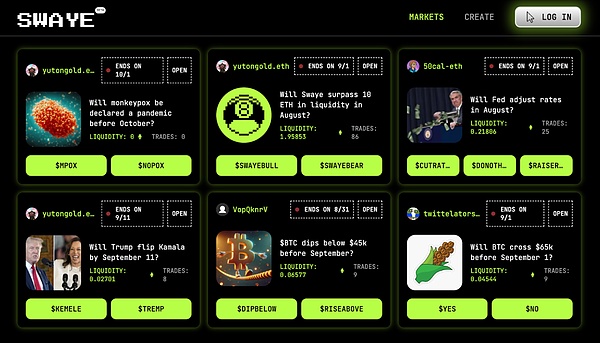 利用現有的社交媒體渠道是吸引更多用戶和提升預測市場參與度的有效方式。通過與Farcaster和Solana的Blink等平臺集成,預測市場可以利用已建立的網絡進行分發和用戶互動。像Swaye和Bookie這樣的項目已經在朝這個方向發展,使用戶能夠直接在社交動態中分享他們的預測,創造病毒式傳播的時刻并推動參與。