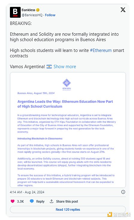 只需一百多家初創公司,提供5000多份加密工作,將加密價值帶入阿根廷……阿根廷可能成為第一個達到Crypto逃逸速度的國家,成為全球第一個端到端的加密驅動型國家。
