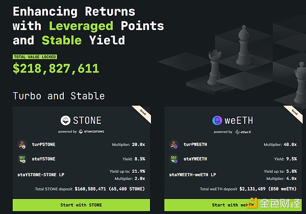 stoneQUEEN可以與STONE1:1兌換,持有stoneQUEEN可以獲得和持有等量STONE相同倍數(shù)的StakeStone積分。然而,把stoneQUEEN拆分成staYSTONE和turPSTONE并同時(shí)持有這兩者,可以無損獲得2倍的積分乘數(shù),同時(shí)根據(jù)持有價(jià)值獲得ScrollMarks積分。