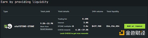 staYSTONE為追求穩(wěn)定收益的投資者提供了6%的固定年化利息,但沒有StakeStone積分獎(jiǎng)勵(lì),根據(jù)持有價(jià)值獲得ScrollMarks積分。在基金到期時(shí),staYSTONE:STONE>1