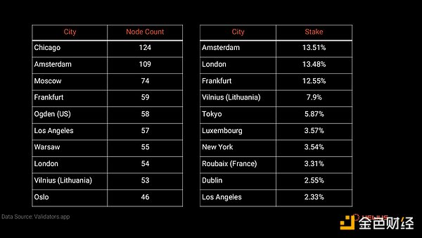 網(wǎng)絡節(jié)點的地理多樣性對于降低風險和提高網(wǎng)絡抗脆弱性至關重要。當過多的驗證者集中在一個地區(qū)時,網(wǎng)絡的彈性就會依賴于這些特定司法管轄區(qū)的監(jiān)管框架。