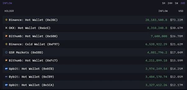 對2025年初MASKTokens的30天資金流入和流出分析顯示,資金流動接近平衡: