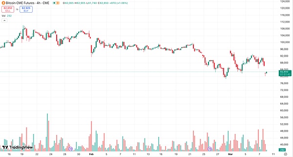 今日早間,Bitcoin再度觸及了8萬美元關(guān)口,在撰寫本文時(shí)已反彈至82500美元上方。周末的下跌也讓CME的Bitcoin期貨圖表上和上周一樣留下了巨大的缺口。