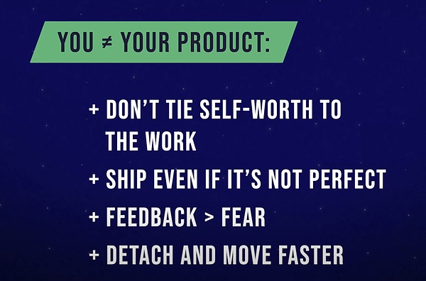 NFX投資人觀察到,許多創(chuàng)業(yè)者把自我價值和產(chǎn)品緊密綁定在一起。他們會想:我把這個產(chǎn)品推向世界,如果人們不喜歡它,就等于不喜歡我。這種無意識的心理連接讓他們在發(fā)布產(chǎn)品時變得極其謹(jǐn)慎,過度追求完美,因為害怕出錯而拖延。他們覺得自己有很多東西要失去,但實際上這種想法讓他們失去了最寶貴的東西:時間和機會。