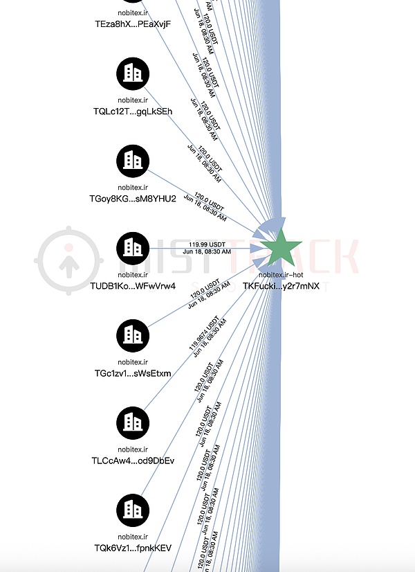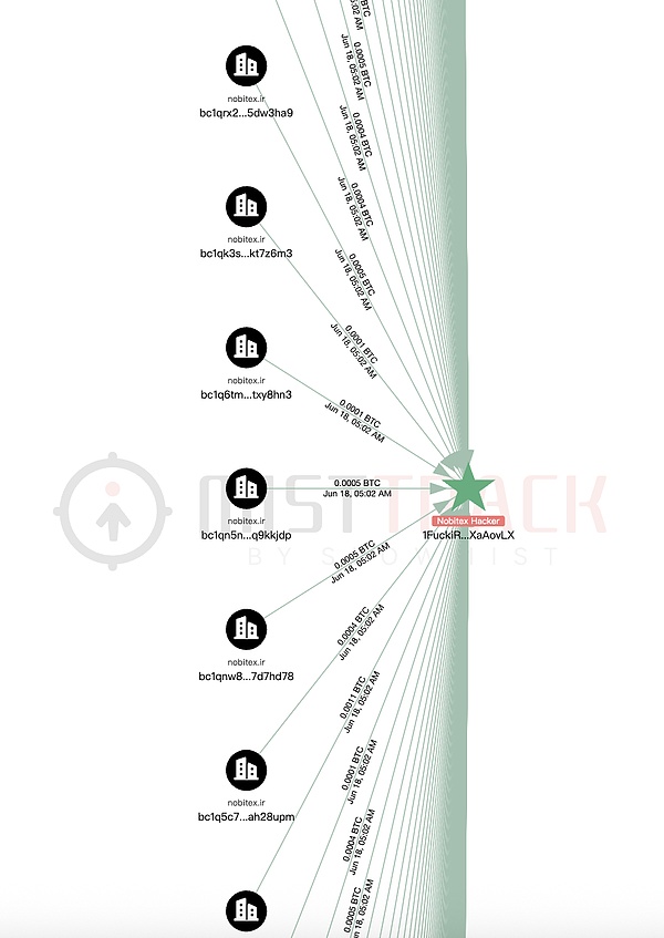 我們使用鏈上反*洗*錢與追蹤工具MistTrack進行分析,Nobitex的損失不完全統計如下: