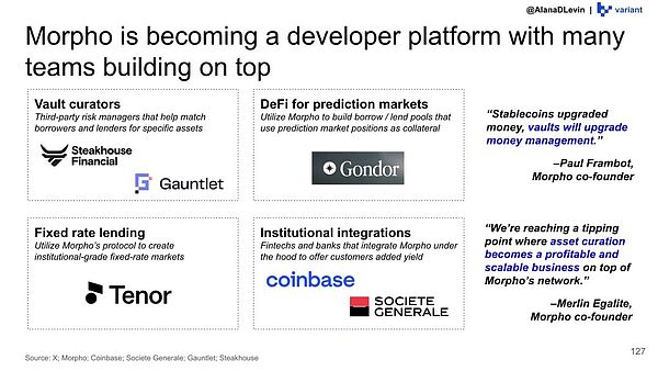 在資產持續積累、穩定幣高速增長的背景下,鏈上創新的另一條主線也開始清晰浮現:“鏈上構建、全網使用”的基礎設施趨勢正在加速顯現。例如Morpho這樣的協議,正是這種模式的代表——核心邏輯全部在鏈上執行,但用戶與應用卻遍布生態的每個角落,真正實現了“鏈上原生、場景無處不在”的擴展路徑。
