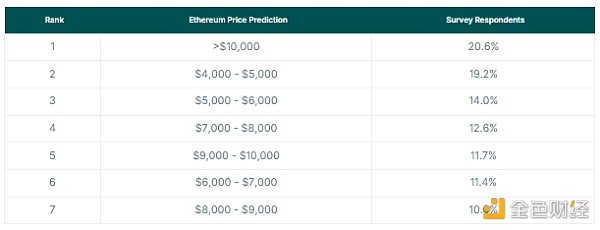 關于Ethereum在本周期內將漲幅最高的預測從最受歡迎到最不受歡迎的預測排名如下: